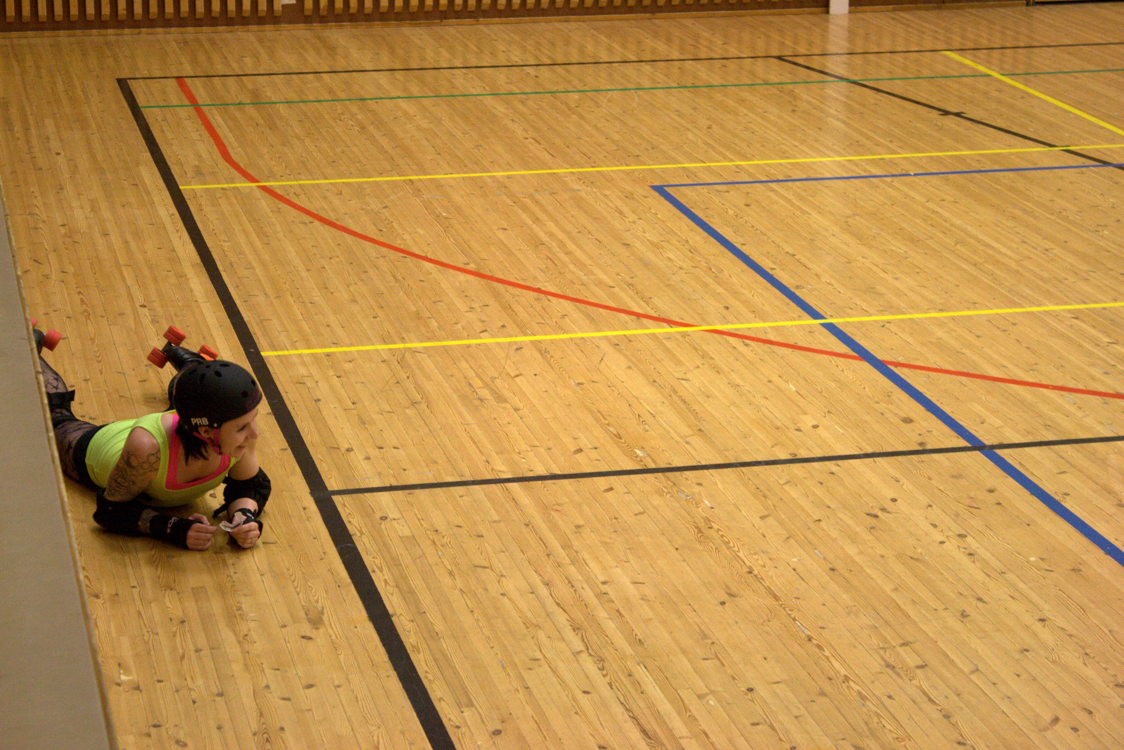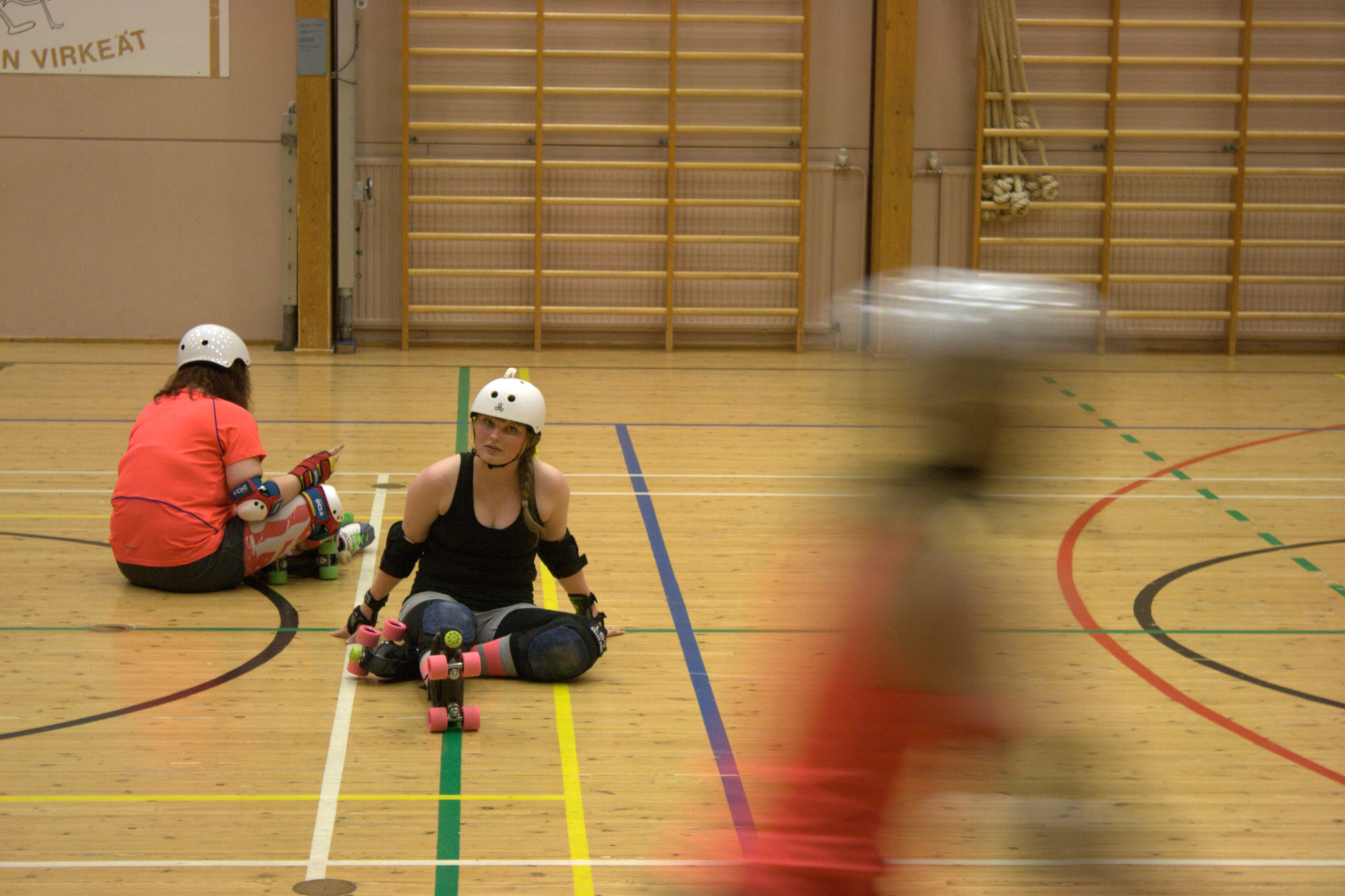 Kun menee seuraamaan roller derbya, sitä odottaisi tyttöjä vähissä vaatteissa tönimässä ähisten toisiaan. Harjavallan liikuntahallissa touhu on hieman raadollisempaa. Porin roller derby -joukkue on ensin luistellut minuuttitolkulla salia ympäri, jonka jälkeen vuorossa on kymmeniä kyykkyliikkeitä rullaluistimien päällä huojuen. Sitten luistellaan kenttää edes takaisin kaatuen aina välillä.