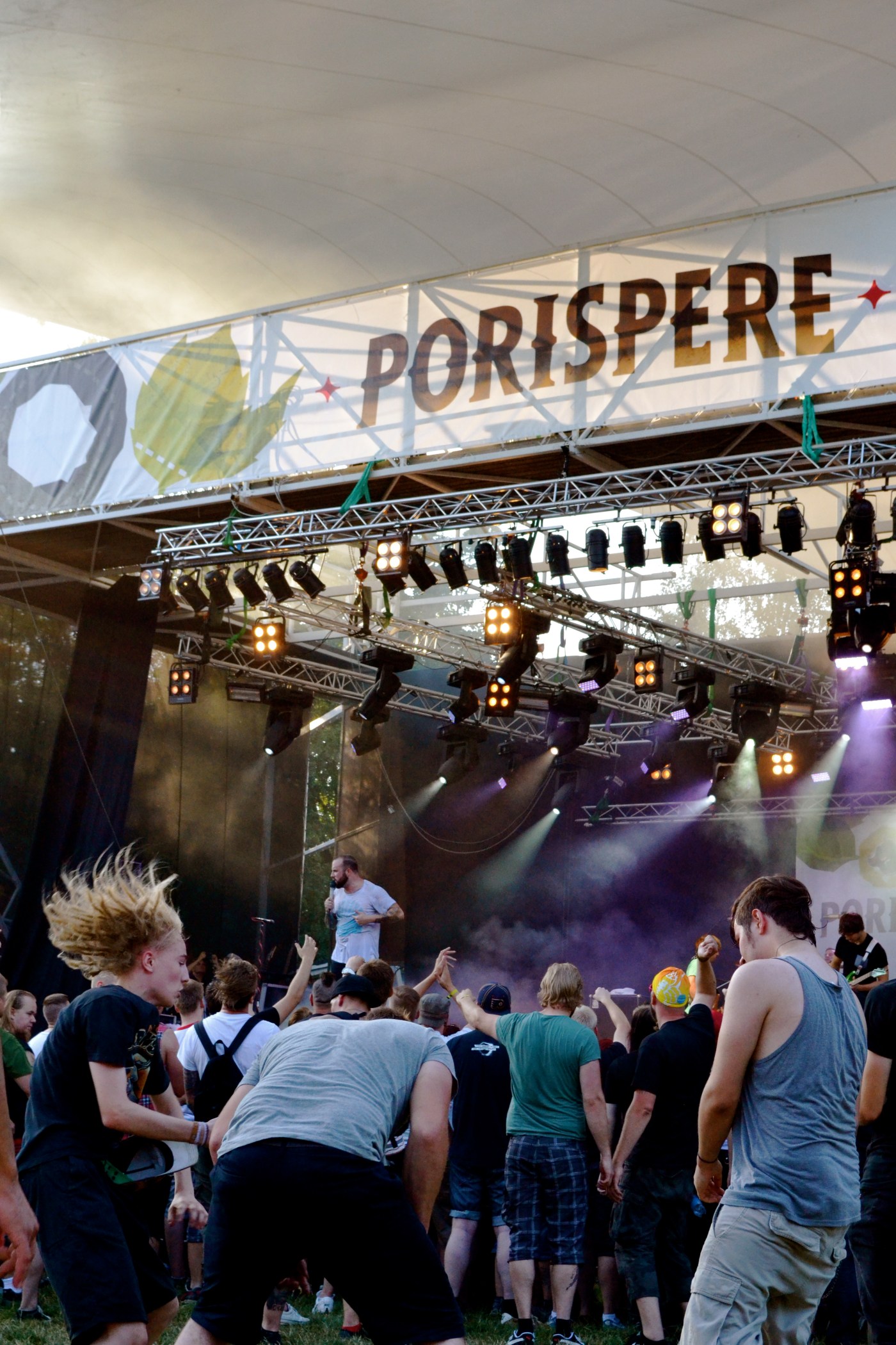 Perjantai oli Porisperen raskain päivä ainakin musiikin suhteen. Tarjolla oli muun muassa paljon metallia sen eri muodoissa ja ihmiset moshasivat sen mukaisesti. Kun itse jätti tukanheiluttelut vähemmälle, ehti kiinnittämään huomiota kanssaeläjiensä riemukkaaseen Porispere-eloon.