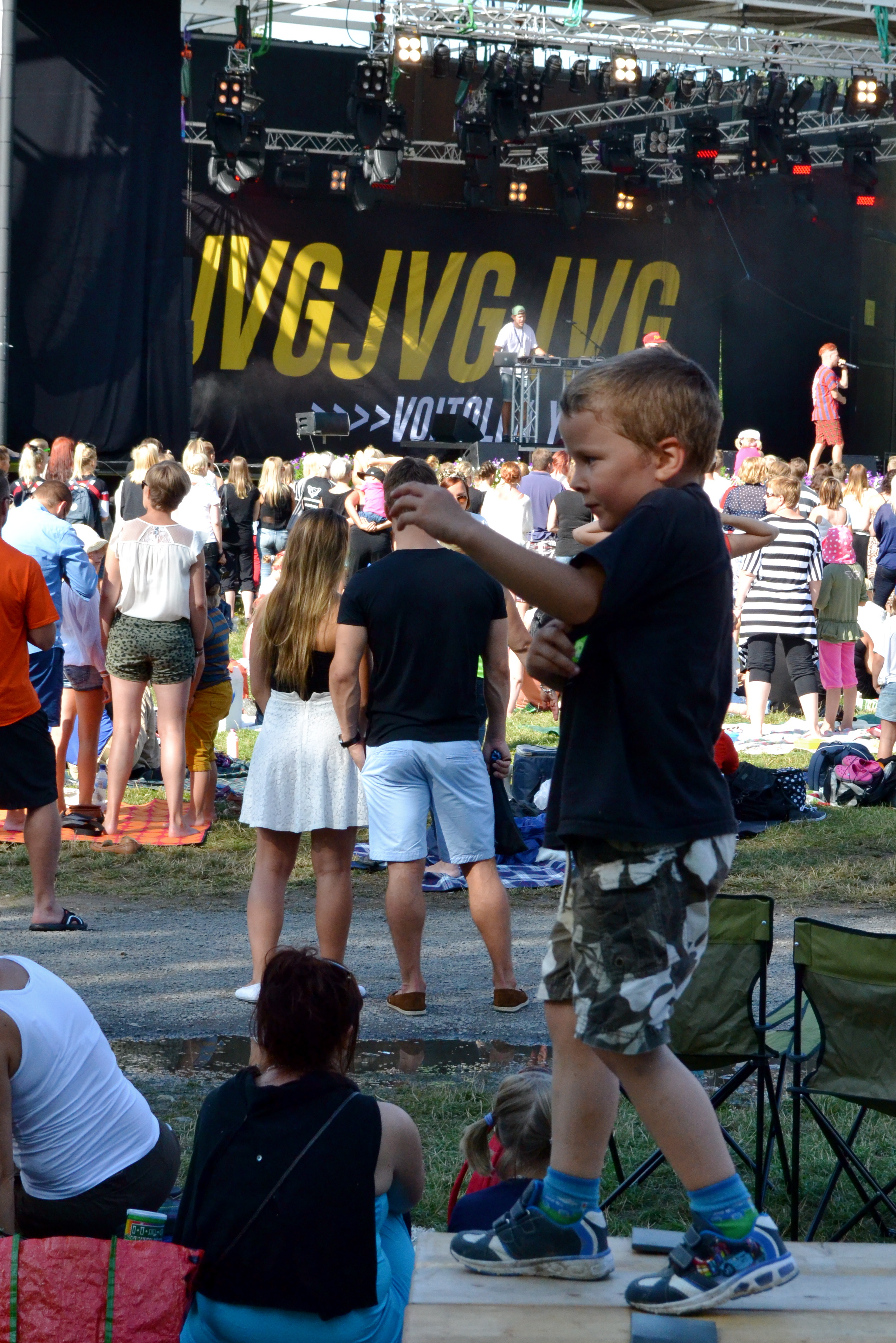 Näin väsyneitä lapsia, jotka olivat varmasti olleet jo monta tuntia onnellisia ja breikkaavia. Semmoisen sykkimisen jälkeen on vaikea pysyä hereillä, vaikka Vartiaisen Jenni hehkuisi täydellisyyttään lavalla.