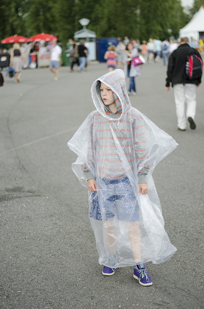 Pori Jazz -pukeutuminen noudatti pitkälti perinteistä kaavaa: piké-paita, neule ja kangashousut tai -shortsit. Poikkeuksia aiheutti lämmin keli. Muutama miespuolinen henkilö pyöri alueella ilman paitaa, ja naisillakin oli välillä hätkähdyttävän kesäisiä, eli vähäisiä, asusteita.