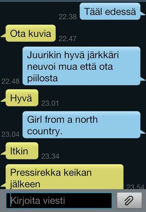 – Jumalauta, kun olis nähnyt tyyliin sen Times they are a-changing Bobin.