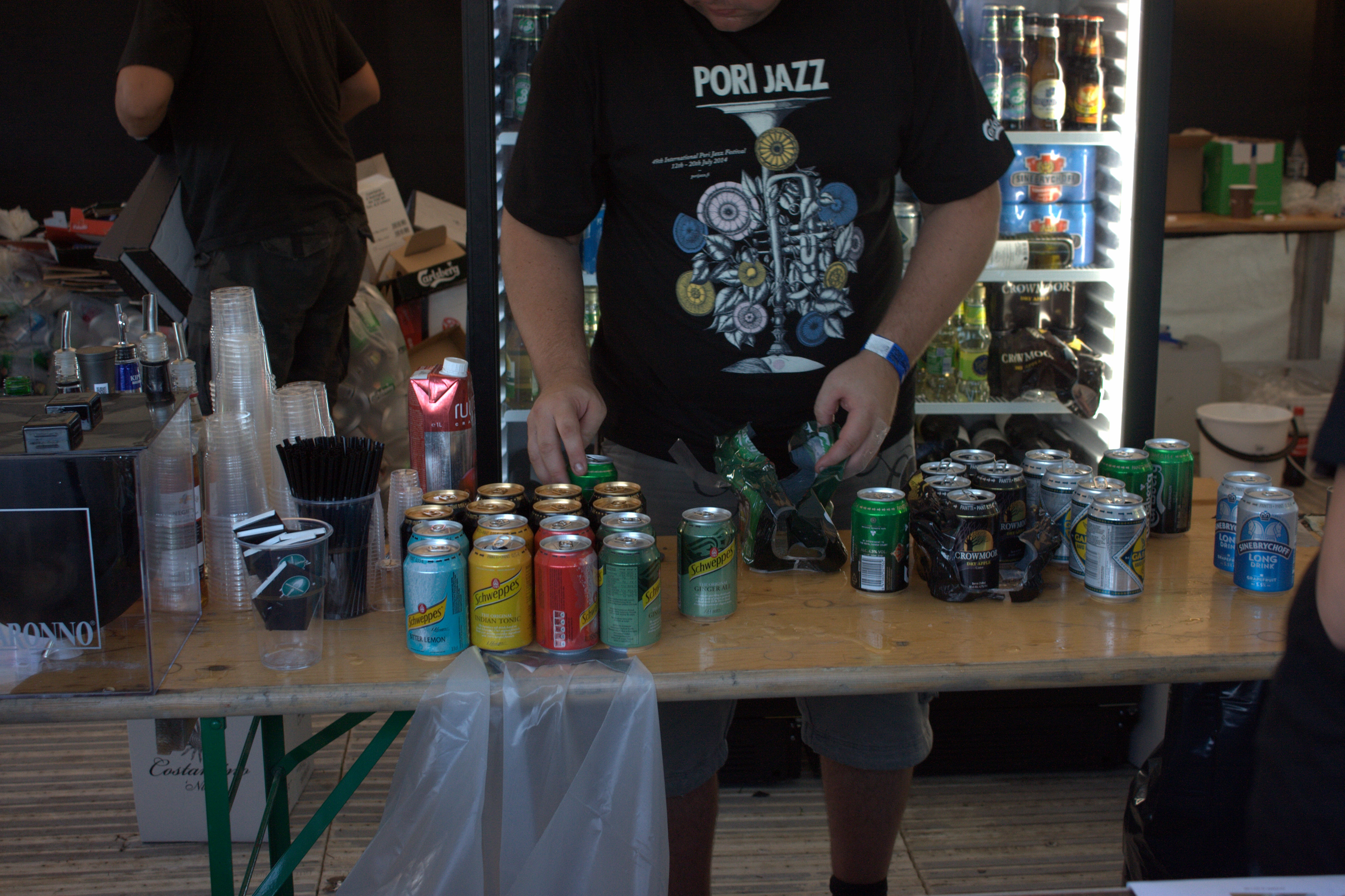 Tänä vuonna itse festivaalialueelle ei saanut viedä omia juomia. Onneksi, seuraa abstrakti käsite, kansa raivostui ja vaatii todennäköisesti valtiovallan sortosääntelyn lopettamista niin hanakasti, että pian omien viinien litkiminen taas onnistuu. Tai sitten festivaalit huomasivat tekevänsä messevää tiliä kaljanmyynnillä, eikä paluuta entiseen enää ole. Jazzien kohdeyleisö kun on pääasiassa maksukykyistä keski-ikäistä väkeä, jonka rahamassi kestää anniskelualuehinnat.