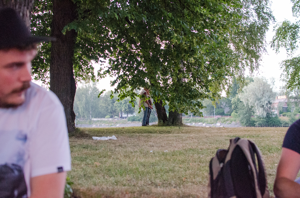 Istuskeluseurueisiin eksyi monenlaista kulkijaa. Sehän on ihan kivaa. Yksi pummaa röökiä, toinen tarjoaa bisseä. Jos tullaan muualta, Poria kehutaan. Jos ollaan Porista, kaikkea vähän nälvitään, mutta silti on aika lystiä.