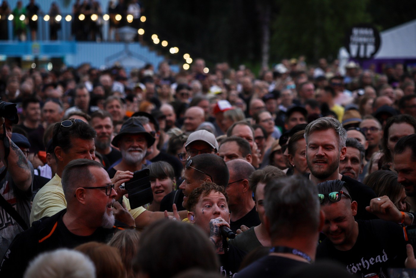Trenditietoisina suurkaupunkien kasvatteina emme tällä kertaa pureutuneet suomalaisen tuskan ja hien maailmaan suurella antaumuksella. Oli kuitenkin selvää, että suuri osa vieraista oli tullut Turmion Kätilöitä fanittamaan. Yhtyeen show on muuttunut vuosikymmenten saatossa suuremmalle yleisölle soveliaammaksi. Se olikin paikallaan, sillä eturivistä bongattiin myös erään festarivieraan jälkikasvua, joka luontevasti värvättiin bändin toimesta ”kätilöksi”, joka on yhtyeen hellittelynimi kuuntelijakunnastaan.